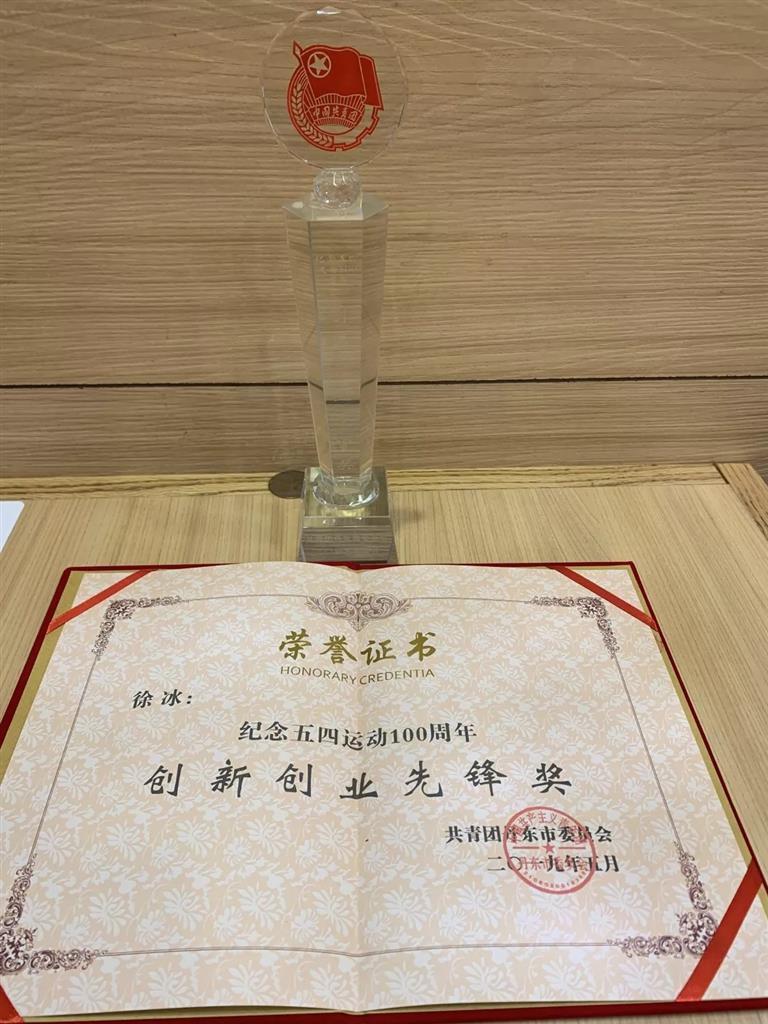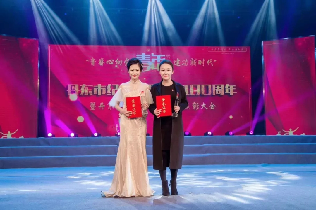 丹東欣時代生物醫(yī)藥科技有限公司總經(jīng)理徐冰(右)榮獲丹東市五四創(chuàng)新創(chuàng)業(yè)先鋒獎